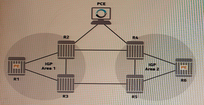Based on the exhibit, which of the following is a viable option for the Path Computation Element (PCE) to obtain all the necessary topology and traffic-engineering information from the network, so that it can calculate LSP paths on behalf of the PE routers?