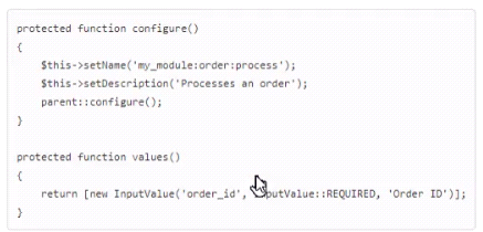 Example: php bin/magento ny_module:order:proeess --order_id=1245.