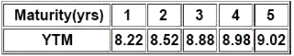 There is a 10.25% risky bond with a maturity of 2.25% year(s) its current price is INR105.31, which ccorresponds to YTM of 9.22%. The following are the benchmark YTMs.