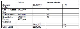 If through a well-organized materials management department direct materials can be reduced by 10% and direct labor by 5% the improvements in profits would be: