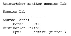 Given the following output, on what interface would you expect to see mirrored traffic when using tcpdump?