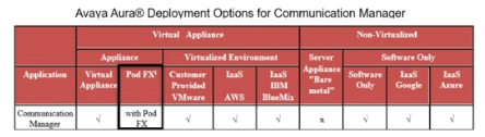 The exhibit contains the deployment options for Communication Manager.