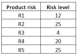 EX1. The test suite for the product must ensure that at least each quality risk item is covered by at least one test case (a quality risk item can be covered by more test cases).