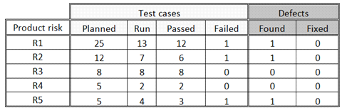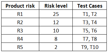 Furthermore the period for test execution is very short. Your goal is to test all the product risks in a risk-based way, while assuring that each product risk gets at least some amount of testing.