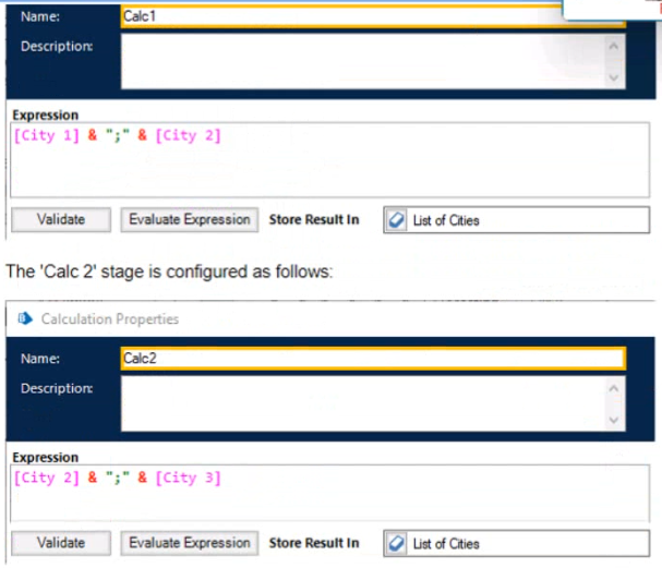 The 'Calc 1' stage is configured as follows: