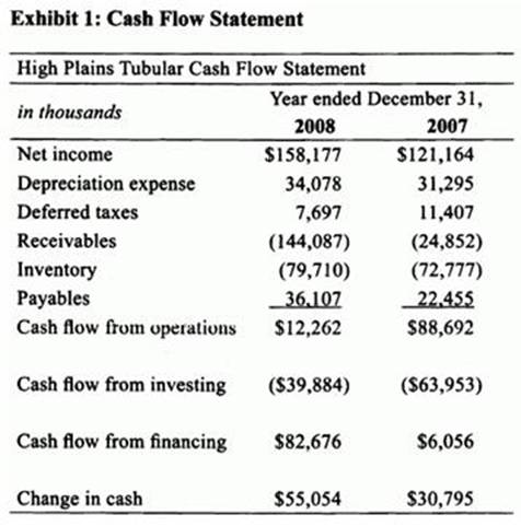 To get a better understanding of High Plains' financial situation, it is helpful to review High Plains' cash flow statement found in Exhibit 1 and selected financial footnotes found in Exhibit 2.