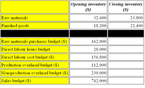 A company has the following budget information for next year:
