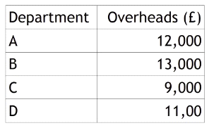 It takes each department 4 hours, 4 hours, 2 hours and 3 hours respectively to produce the company's only product. The company recovers costs on the basis of labour hours. They plan to produce 6,000 units