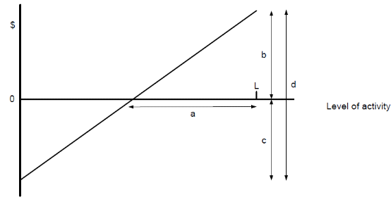 In this profit/volume graph, which distance indicates the contribution earned at level of activity L?