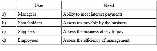 Accounting information is required for a wide range of users both internal and external. Each user has a different need for the information.