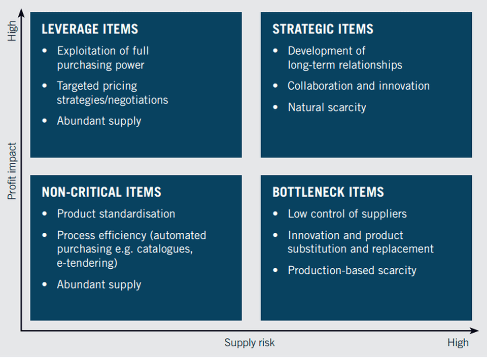 The instrument plays a crucial role in steel manufacturing because it presents in the majority of products, in which case lacking this instrument would have significant impact on the organisation's output (production lines stop or damaging other machine). Otherwise, the risk of supply is high because there is limitation in supply. Therefore, it is considered as a strategic item in term of Kraljic's portfolio matrix. Procurement manager should form partnership with suppliers to maximise the value.