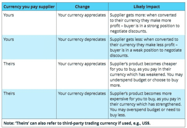''Foreign exchange volatility can significantly impact pricing in international procurement. Buyers must assess currency risks as part of their cost evaluation and strategic preparation.''
