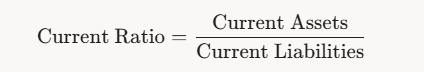 Description: Liquidity ratios assess a supplier's ability to meet short-term obligations. The Current Ratio is calculated as: