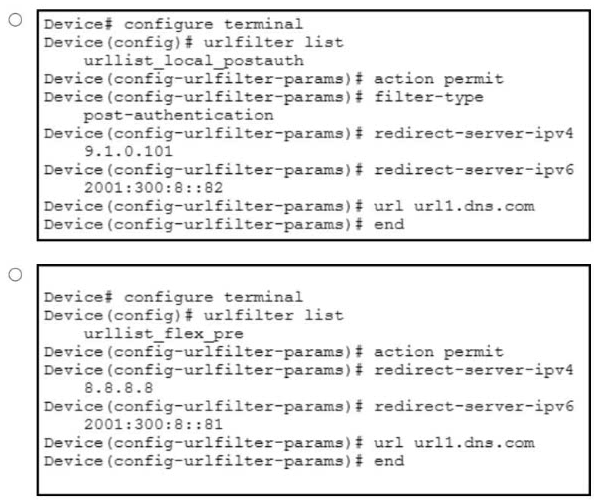 The correct URL to be used in the configuration as the external redirection URL for guests to view the company's Facebook page before accessing the network ishttp://<MSE>:8083/fbwifi/forward (B). This URL is associated with the Cisco MSE's Facebook Wi-Fi feature, which facilitates the redirection process.Reference: CCNP Enterprise Wireless Design ENWLSD 300-425 and Implementation ENWLSI 300-430 Official Cert Guide.