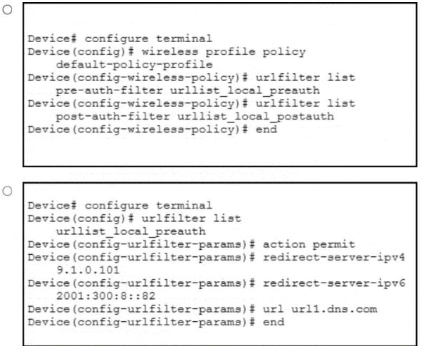 A network administrator of a school district must implement a DNS-based ACL to block students from accessing certain teacher URLs where test papers are hosted. The infrastructure contains a Cisco Catalyst 9800 WLC with 25 9136 APs. The administrator configured the URL Filter List called urllist_flex_pre, applied the URL Filter List to the default Flex Profile, and defined Preauth called urllist_local_preauth and Postauth called urllist_local_postaut URL Filter List. Which configuration must the administrator apply to implement the ACL on the default policy profile?