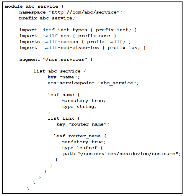 Based on the YANG presented, what is the correct xpath to retrieve the router named ''ios- device'' under the ''CustomerA'' service name?