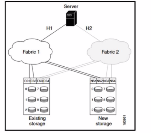 Refer to the exhibit. A Cisco engineer is planning a data migration job in heterogeneous SANs where the existing and new storage devices for the migration are already connected to the MDS switches. All paths from the SSM to the storage-connected switch are going through the Cisco fabric. The setup is with active/active arrays and multiple LUN sets. What is the best approach to copy the LUN sets to the new location?