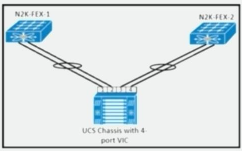 An engineer must connect the four-port Cisco UCS VIC adapter to the fabric extenders. Which connectivity implements a port-channel standalone mode?