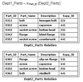Consider the following relational algebraic expression as well as the Dept1_Parts and