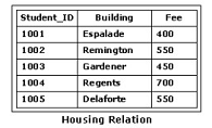 The exhibit shows a table called Housing Relation. This table relates a unique student