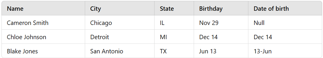 Cameron Smith's 'Date of Birth' field is Null, which indicatesmissing datathat needs to be filled in.