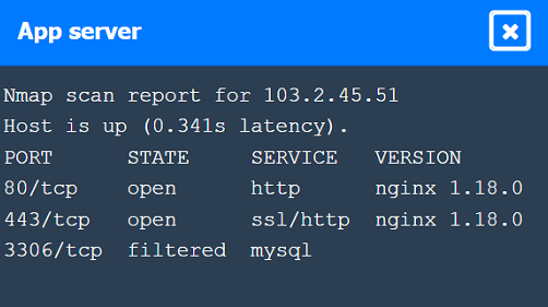 App Server has open ports for HTTP, HTTPS, and filtered for MySQL.