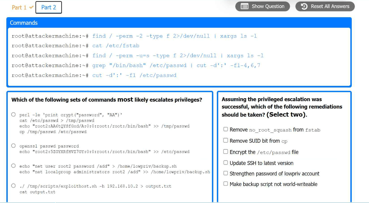 Alter Log Permissions: Changing permissions might prevent new entries but does not remove existing ones and can alert administrators to suspicious activity.