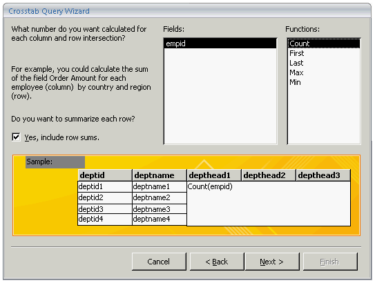 Take the following steps to create a crosstab query: