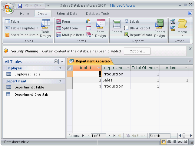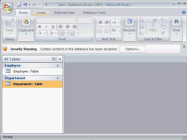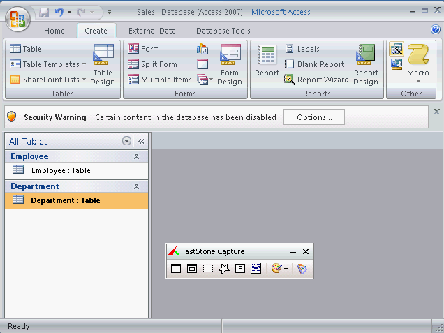 On the database window, click the Create tab.