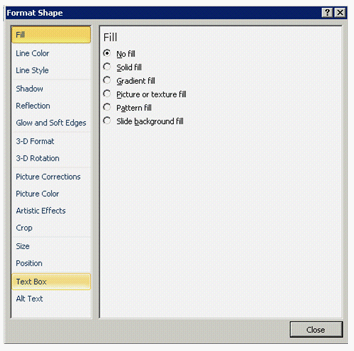 Answer option A is incorrect. The Shadow pane is used to organize a text box for its transparency, size, angle, distance, etc.