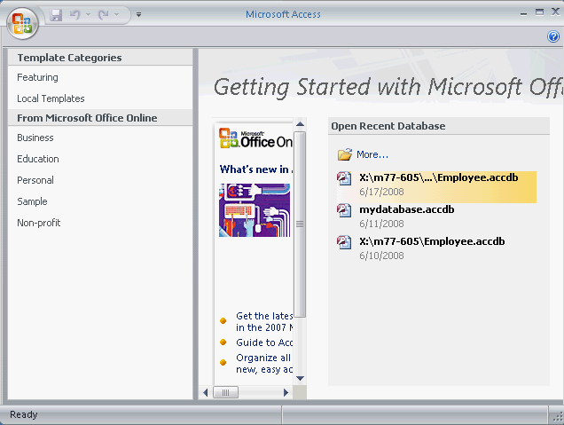On the Open Recent Database page, click the required database.