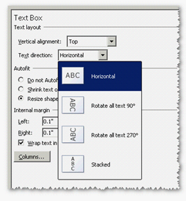 Click the Text Direction drop-down list. Specify the rotation option. Click the Close button.