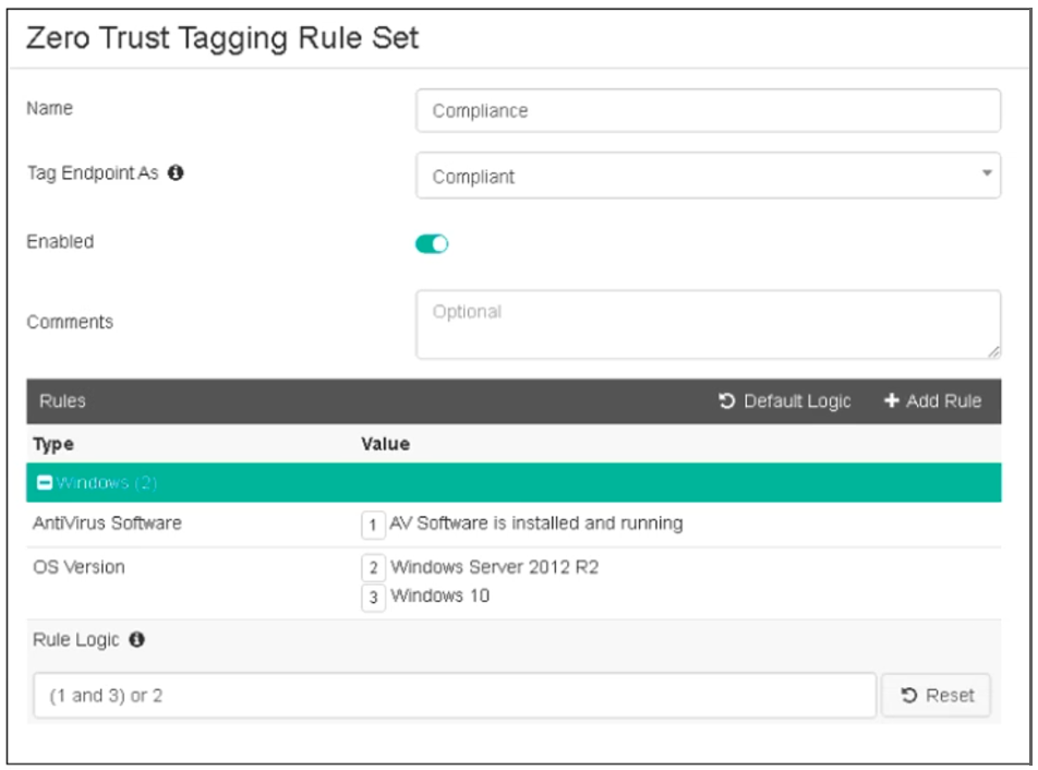 Refer to the exhibit, which shows the Zero Trust Tagging Rule Set configuration.