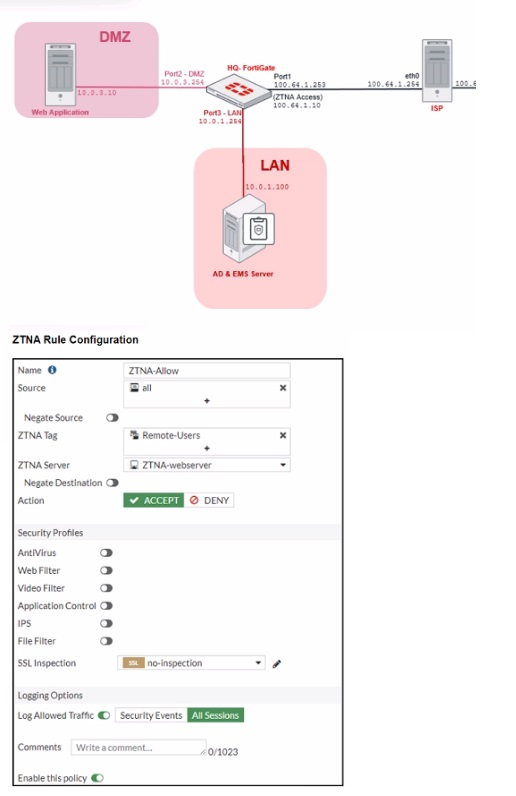 Refer to the exhibits, which show a network topology diagram of ZTNA proxy access and the ZTNA rule configuration.