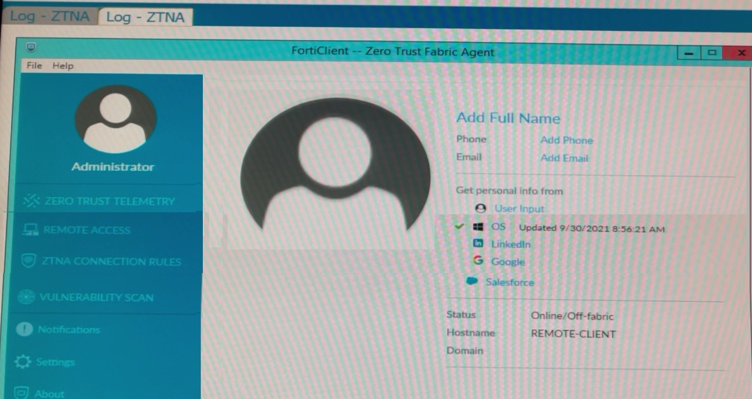 Which show the Zero Trust Tag Monitor and the FortiClient GUI status.