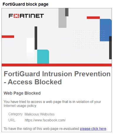 You are trying to access www.facebook.com, but you are redirected to a FortiGuard web filtering block page.