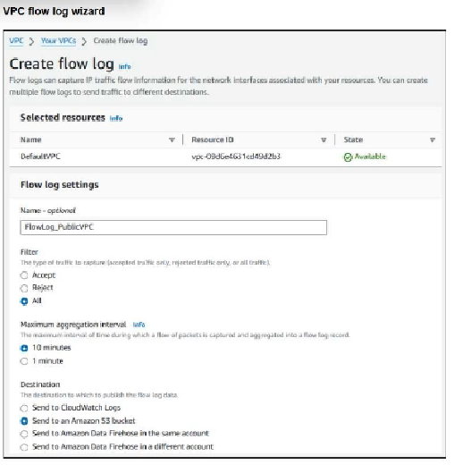 An experienced AWS administrator is creating a new Virtual Private Cloud (VPC) flow log with the settings shown in the exhibit.