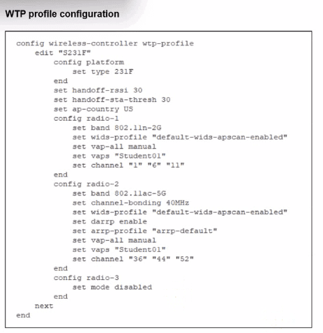 If the new client attempts to conned to the student 01 wireless network, which AP radio will the client be associated with?
