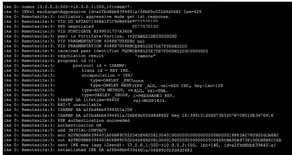 Refer to the exhibit, which contains partial output from an IKE real-time debug.