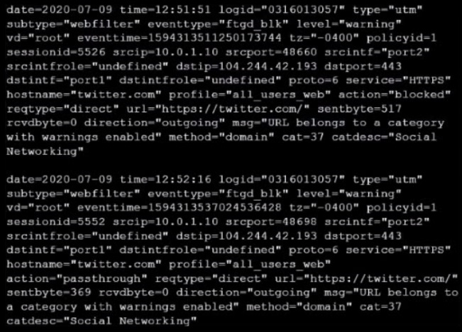 Refer to the web filter raw logs.