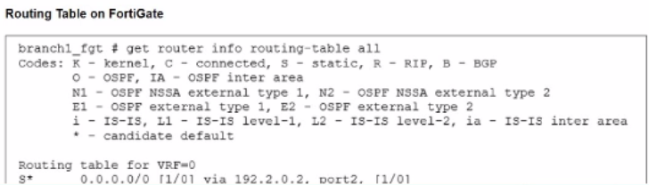 Option A: FortiGate will not load balance or choose between both links because port1 is currently ineligible due to the SLA failure.