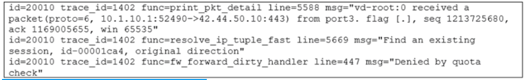 In a Per-IP shaper configuration, if an IP address exceeds the configured concurrent session limit, the message 'Denied by quota check' appears. SD-WAN 7.0 Study Guide page 287