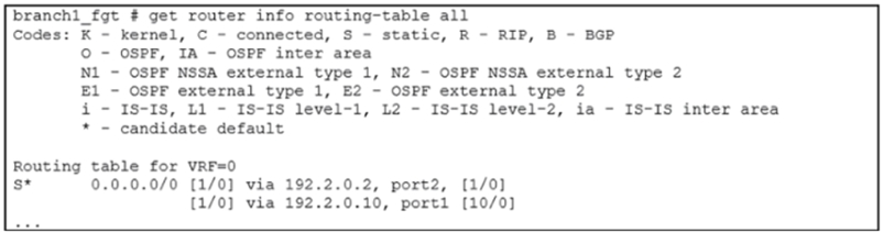 Based on the information shown in the exhibits, what configuration change must be made on dc1_fgt so dc1_fgt routes the reply traffic over T_INET_1_0?