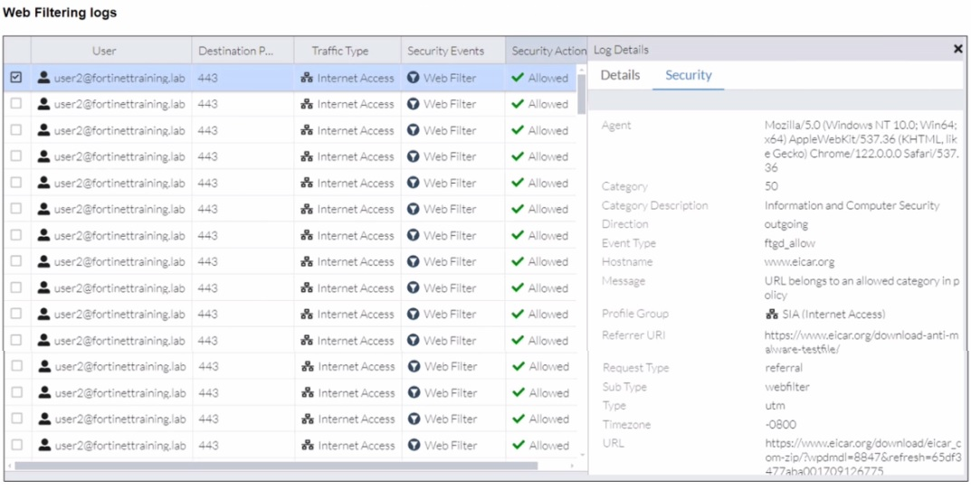 Which type of information or actions are available to a FortiSASE administrator from the following output? (Choose one answer)