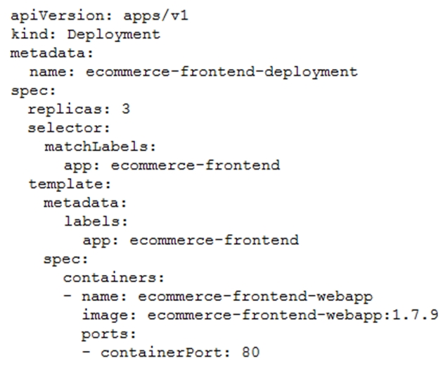 Your application is deployed in a Google Kubernetes Engine (GKE) cluster. When a new version of your application is released, your CI/CD tool updates the spec.template.spec.containers[0].image value to reference the Docker image of your new application version. When the Deployment object applies the change, you want to deploy at least 1 replica of the new version and maintain the previous replicas until the new replica is healthy.