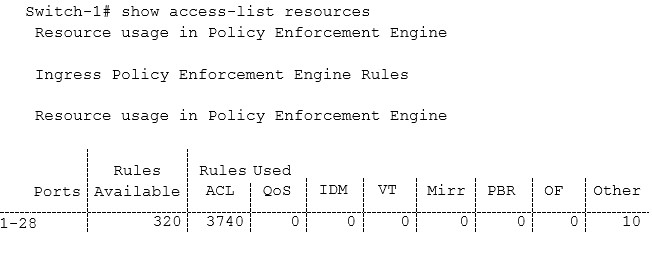 A network administrator sees the output in the exhibit and is concerned that the switch will reach the limit for rules.
