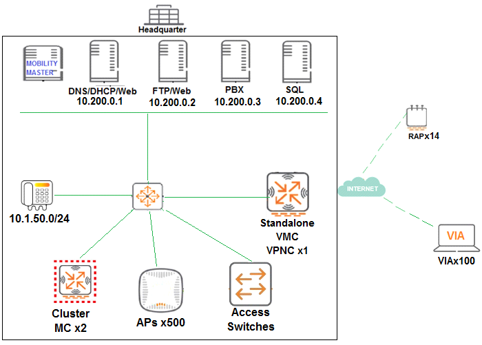 Users should be able to reach DNS, FTP, Web and telephone servers in the campus as well as send and receive IP telephone calls to and from the voice 10.1.50.0/24 segment.