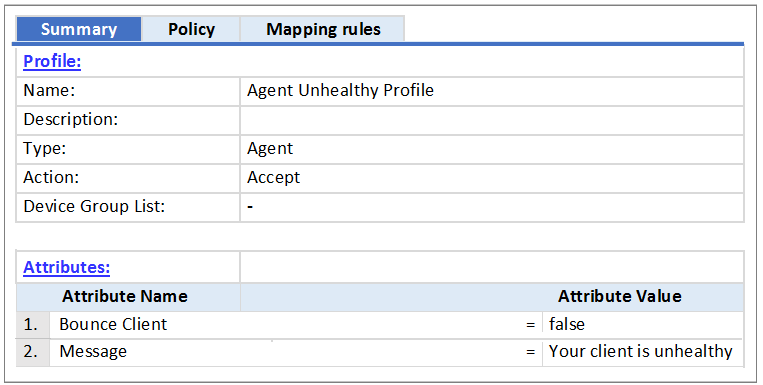 The OnGuard Agent enforcement policy retrieves the posture token. If the token is HEALTHY it returns a healthy message to the agent and bounces the session. If the token is UNHEALTHY it returns an unhealthy message to the agent and bounces the session.