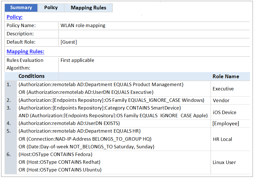 *MAC OUI -- Acquired via various auth mechanisms such as 802.1X, MAC auth, etc.