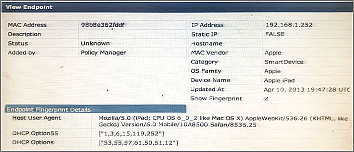 In some cases, DHCP fingerprints alone cannot fully classify a device. A common example is the Apple family of smart devices; DHCP fingerprints cannot distinguish between an Apple iPad and an iPhone. In these scenarios, User-Agent strings sent by browsers in the HTTP protocol are useful to further refine classification results.